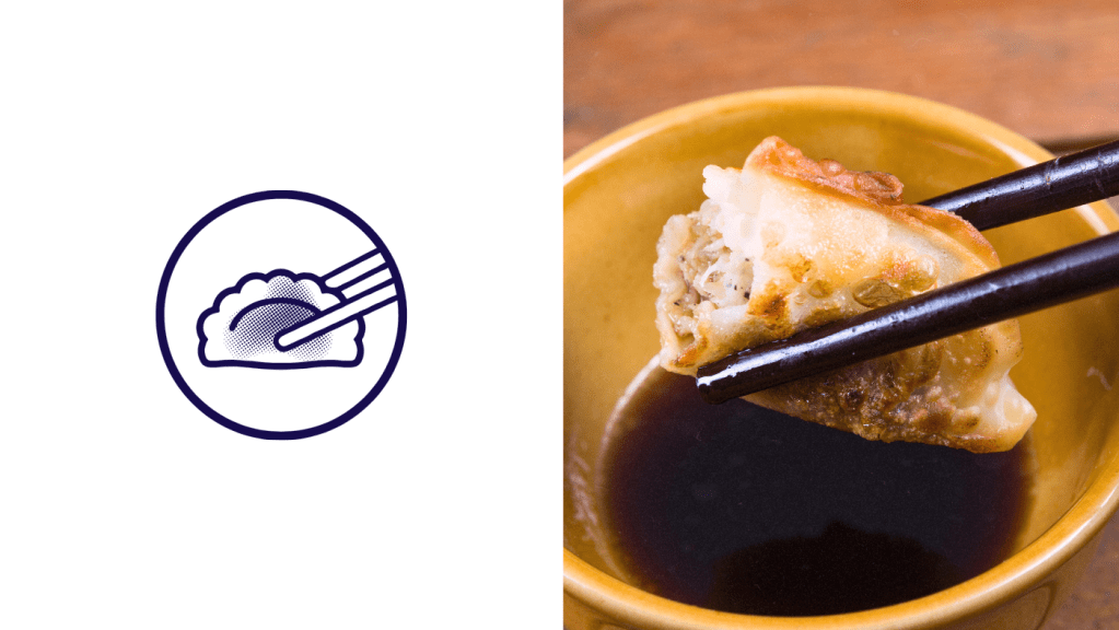 El diseño del logo presenta la gyoza desde la perspectiva del consumidor, como si estuviera justo frente a él, lista para ser disfrutada. Este ángulo busca sumergir al público en la anticipación y el placer de saborear una gyoza artesanal, creando una conexión inmediata entre la marca y la experiencia culinaria.